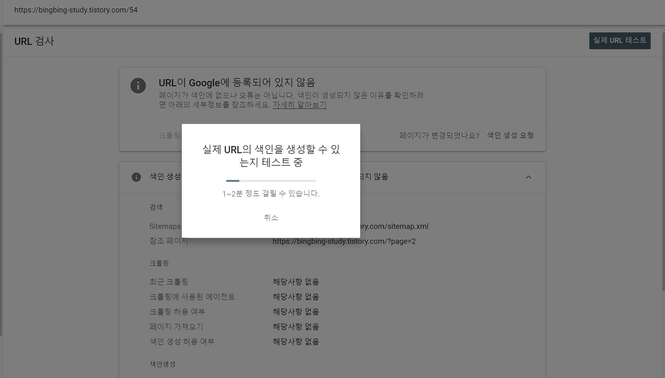 색인 생성 요청을 눌러주면 이런 화면이 뜬다.