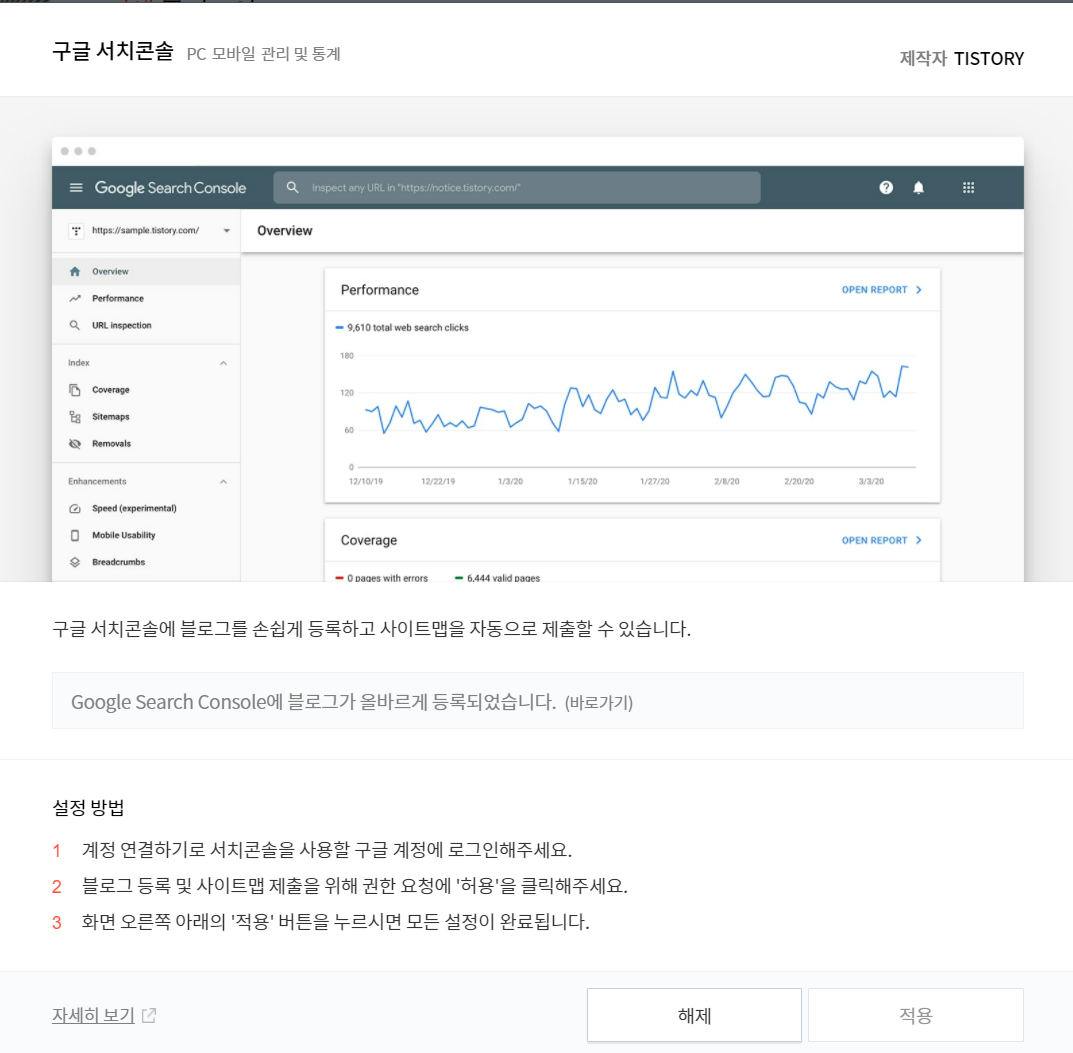 티스토리 플러그인에 들어가서 구글서치 콘솔에 (바로가기) 저 부분을 클릭해주면